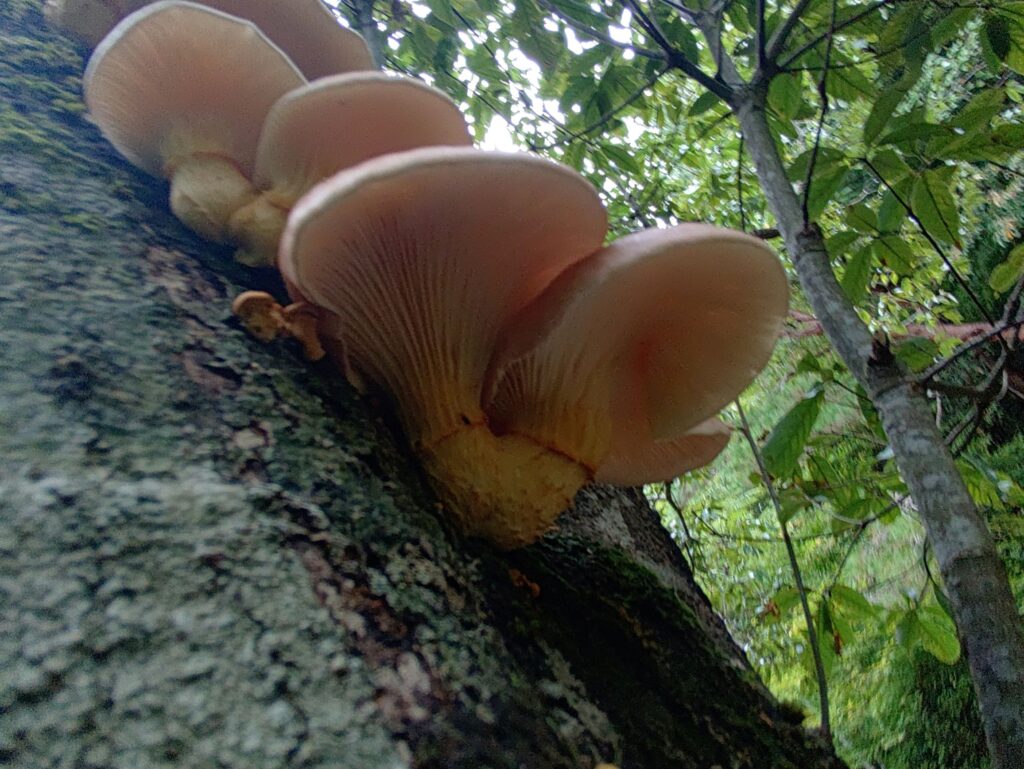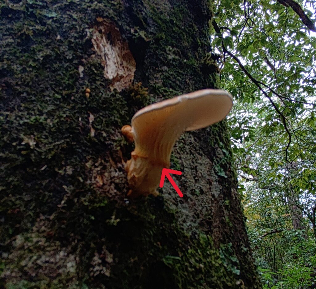 お?立ち枯れたカシの木から立派なキノコが生えてるぞ?