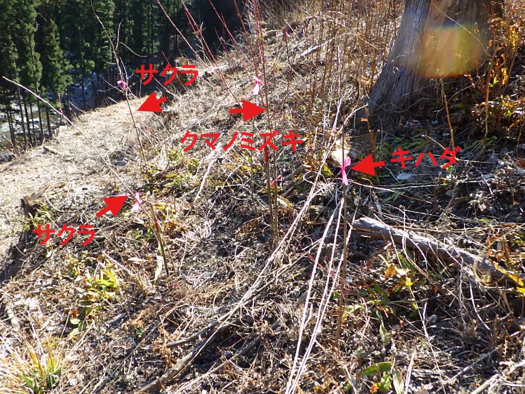 そういう場所からは発生する木々も少なく、それ以外の場所(道付けの影響がない場所)に繁茂しているキイチゴ類やカラムシを主体としたヤブも発達しませんでした。