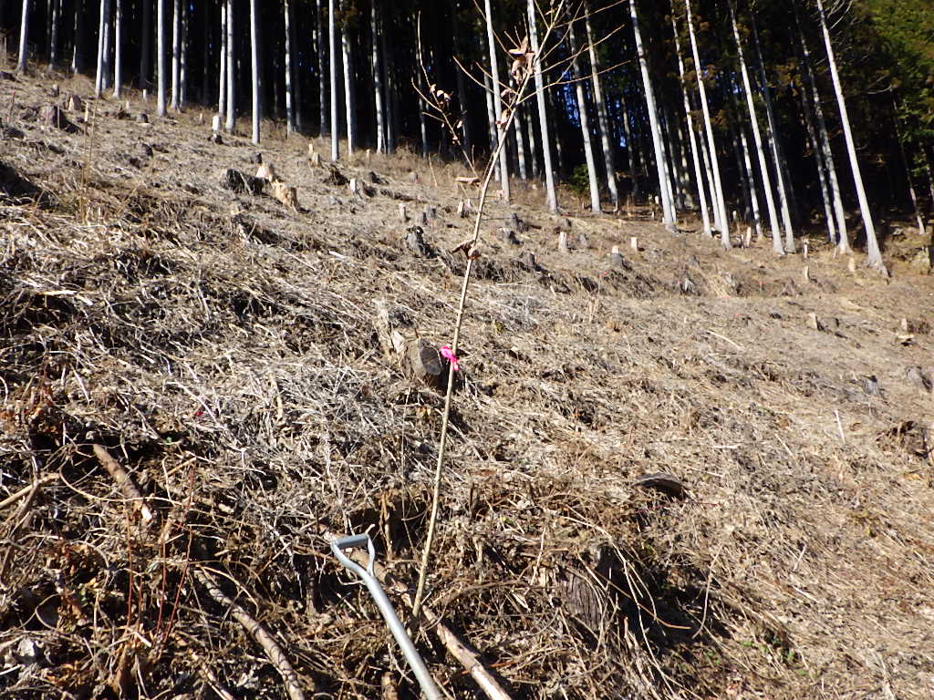 クズが延びなかったヤブにはたくさんの幼樹が生えていますが、いずれ、過密状態になるのは必至です。